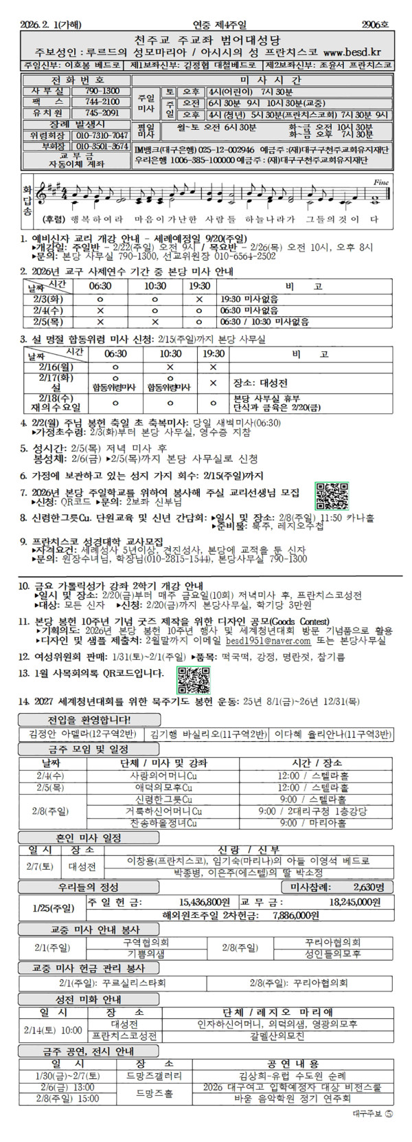 연중제4주일(2/1) 페이지 정보 작성자 범어대성당 댓글 0건 조회 552회 작성일 26-01-30 15:33 목록 답변 본문 연중제4주일(2/1) 2/1 다음글연중제3주일(1/25) 26.01.23
